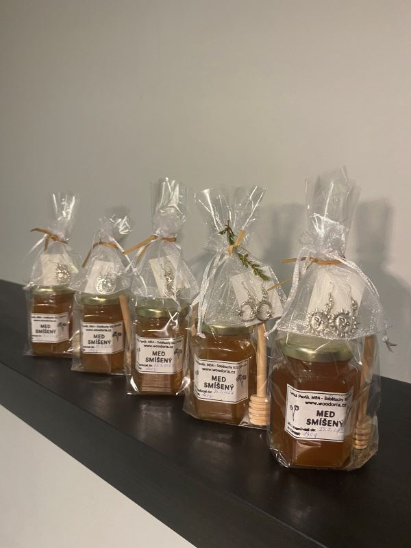 Vánoční balíček s medem a dekorací je krásnou kombinací praktického dárku a přírodního kouzla.