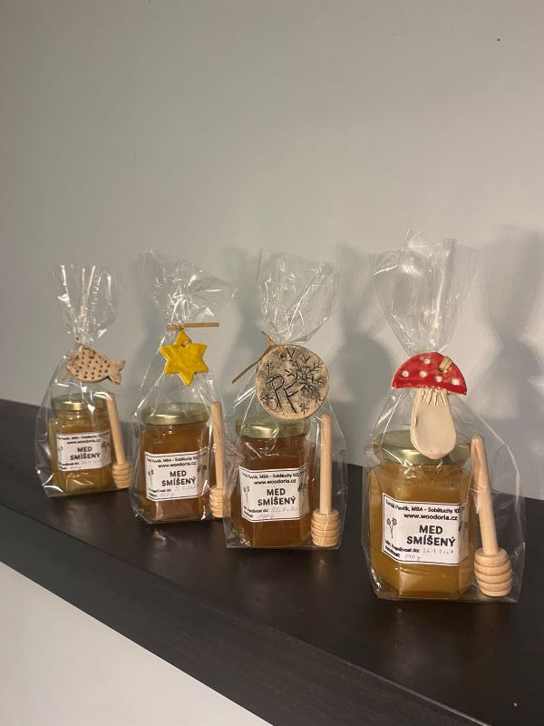 Hledáte krásný a přírodní vánoční dárek, který potěší každého? Tento ručně sestavený vánoční dárkový balíček kombinuje kvalitní med, praktickou dřevěnou naběračku a tématickou dekoraci, která dodá kouzlo sváteční atmosféře.